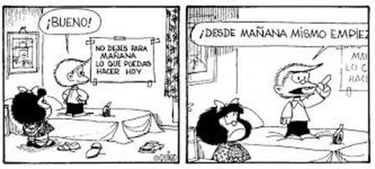 Vive constantemente en dilemas entre el deber (las tareas escolares) y el deseo (jugar o soñar despierto).