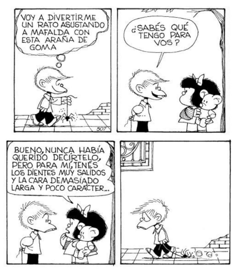 Contexto y creación: Inspirado en un amigo de la infancia de Quino, Felipe fue creado como un contrapunto más emocional y soñador a Mafalda. Representa la timidez y los dilemas existenciales de la niñez.